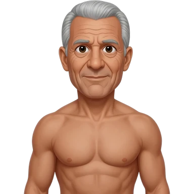 RFK Junior, trumps health secretary a Grey haired old man with the voice of a broken robot with a wrinkly face that's "in shape" in a realistic photo style, full body, shirtless, full body emoji