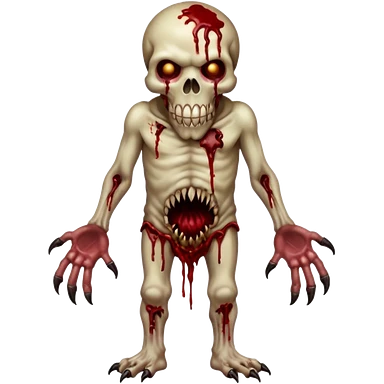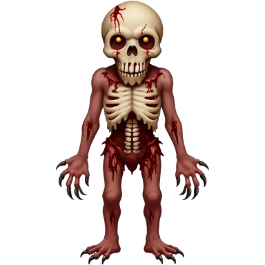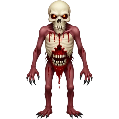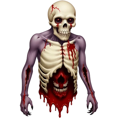 A Hideous mutated monster covered in rotten flesh and blood, in the style of your bleeding skull art, full body emoji