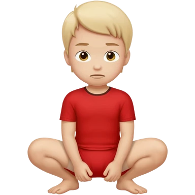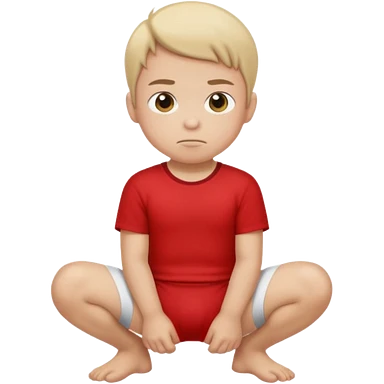 A kid wearing a poopy underwear with a red t-shirt squatting down emoji