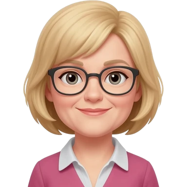 girl, 40 years old, blond sort hair, glasses emoji