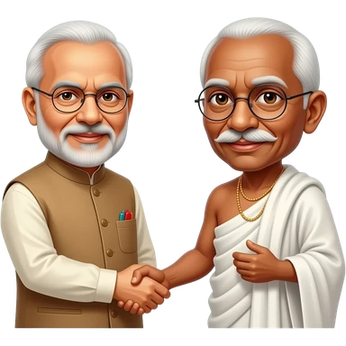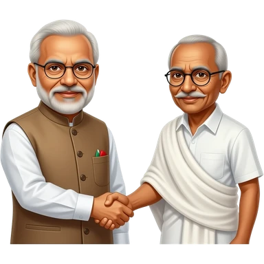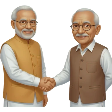 Narendra Modi and Mahatma Gandhi hand shaking to unified the indiariar emoji