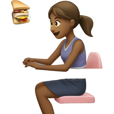 Girl working on computer while eating a sndwhich with the train behind her emoji