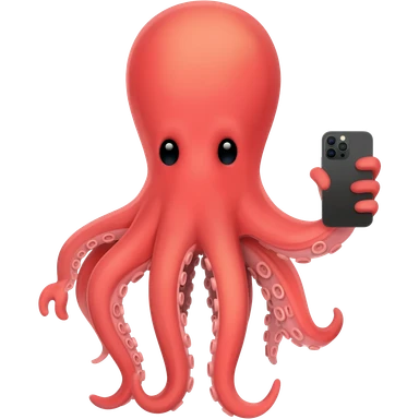 Un pulpo caricaturesco de frente, con cabeza grande y redonda rosada, dos ojos negros con brillo blanco, sin boca visible, parte inferior rojo-rosada y tentáculos curvados abiertos hacia los lados. 🐙 emoji