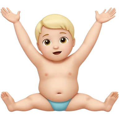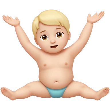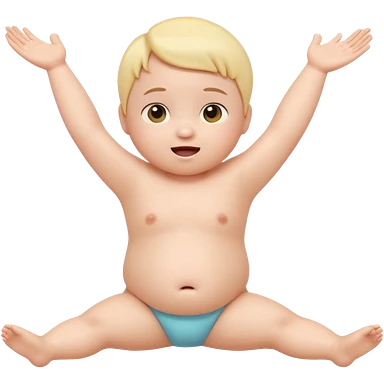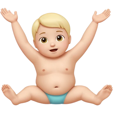Cute 3D baby emoji with fine baby hair, stretching arms and legs wide, surprised but neutral expression, relaxed posture, chubby infant proportions, pastel colors, clean background, emoji-style illustration emoji