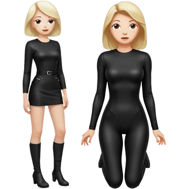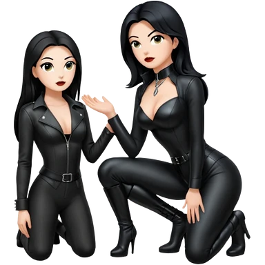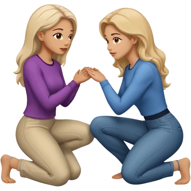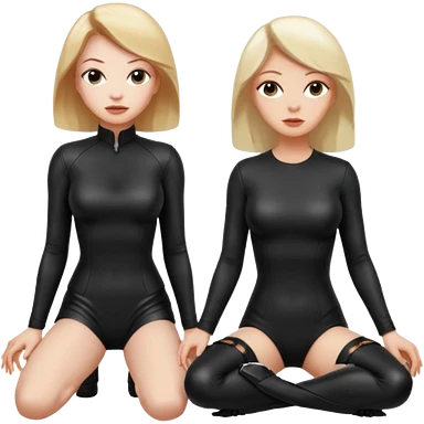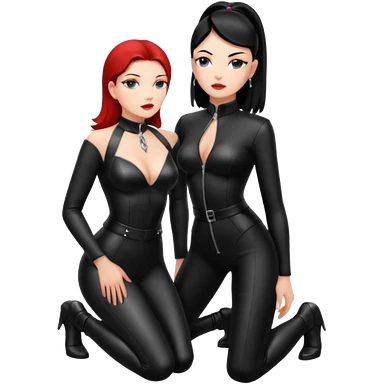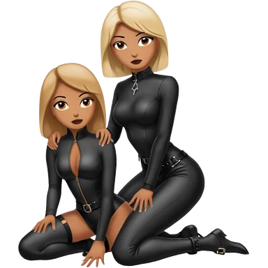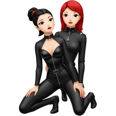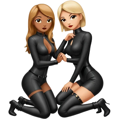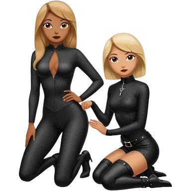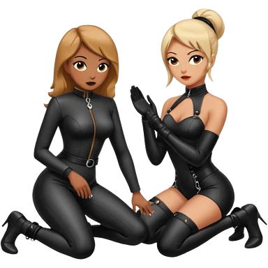 A woman on her knees for another woman, while the other woman stands up next to her. The woman standing is a dominatrix, the other woman on the knees is a slave emoji