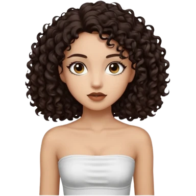 Woman with light skin and dark brown eyes and dark brown curly hair and white tube top emoji