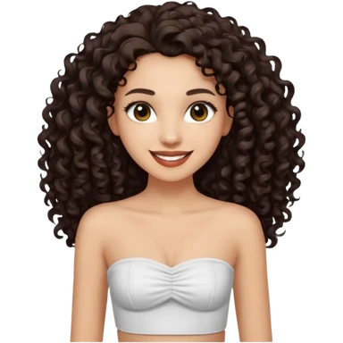 Woman with light skin and dark brown eyes and dark brown long curly hair and white tube top emoji