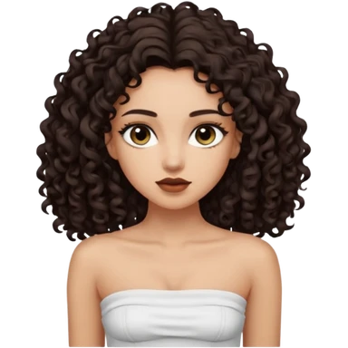 Woman with light skin and super dark brown-almost black colored irises eyes and dark brown long curly hair that’s waist length curly hair and white tube top with no straps emoji