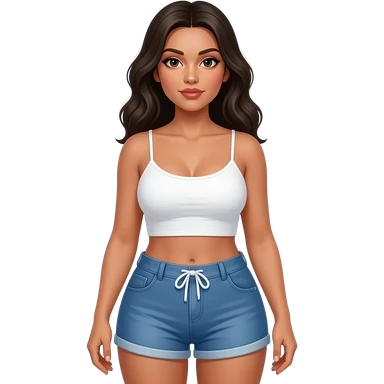 Thicc booty Latina in dolphin shorts and white spaghetti straps crop top emoji