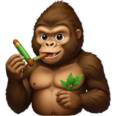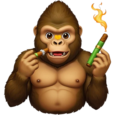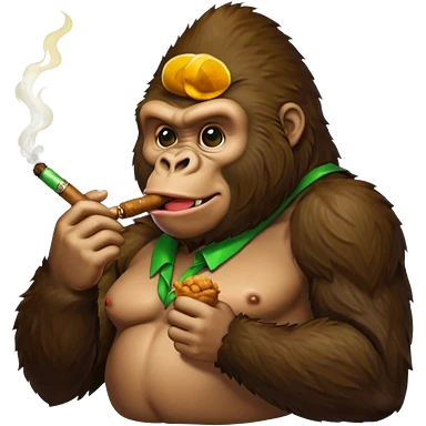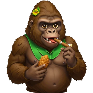make a gorilla eating fried chicken in one hand and a cigar with green filling inside it in the other hand emoji