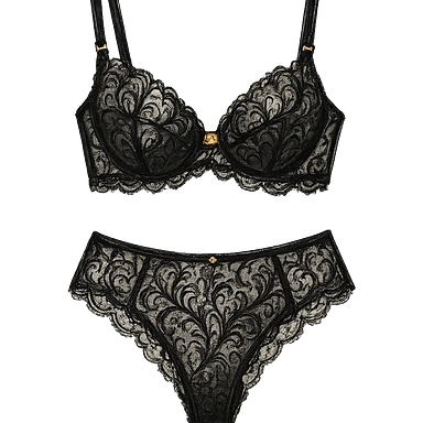 luxurious black lace lingerie set, gold accents, glamorous, fashion illustration style, no background emoji