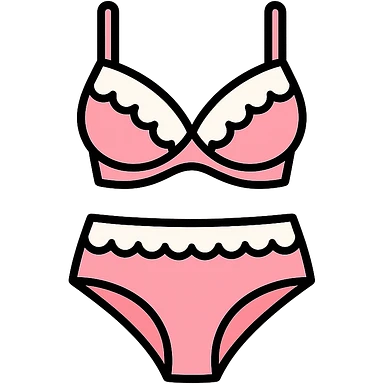 stylish lingerie set, delicate lace, elegant, soft pink and white, minimal background, modern icon style emoji