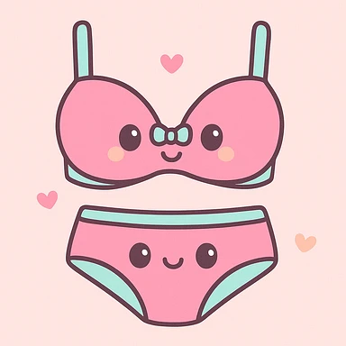 playful cartoon bra and panties set, bright colors, kawaii style, cheerful expression, simple background emoji