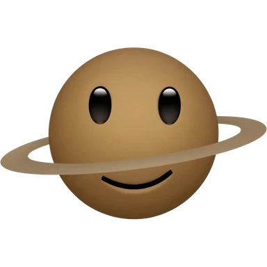 A brown planet with huge rings around it with a cool face emoji