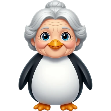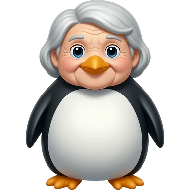 do a cute old grandma penguin with wrinkles make the face still a penguin not human emoji