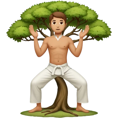 pratiquant de qi gong en position de l'arbre, en tenue noire ou blanche emoji