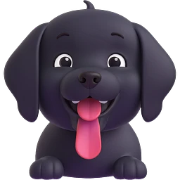 black dog, 3D emoji style, shiny and rounded, happy face emoji
