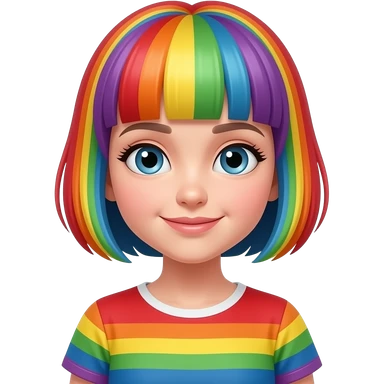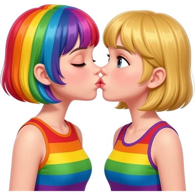 make a girl with short rainbow hair and rainbow clothes kissing a girl who also is in rainbow emoji