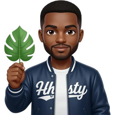 make an emoji of a black man in a shiesty with a leaf in his hand emoji