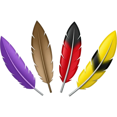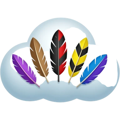 Una nuvola con 5 piume: una viola una marrone una nera e rossa e una gialla e nera emoji