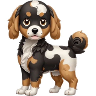 Black medium size mixed cocker shitsu dog, stand like full body dog emoji emoji