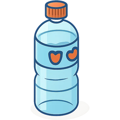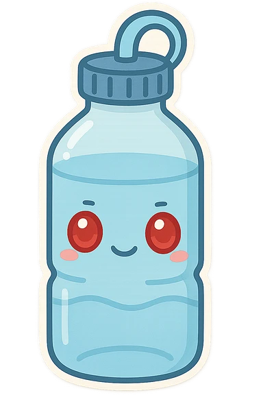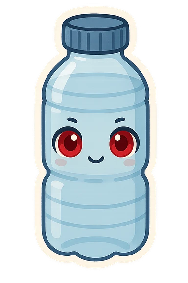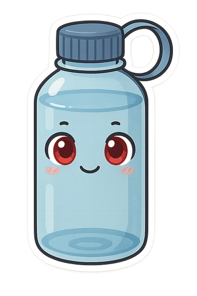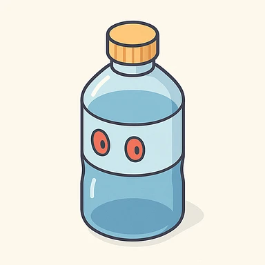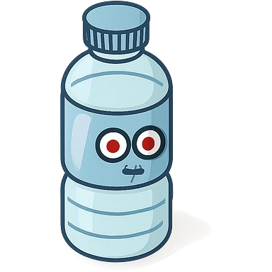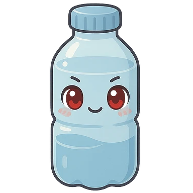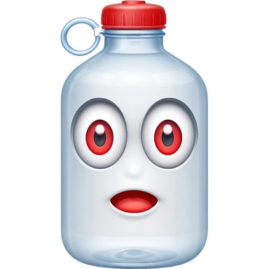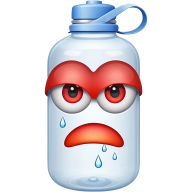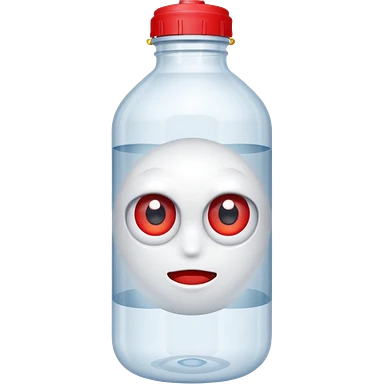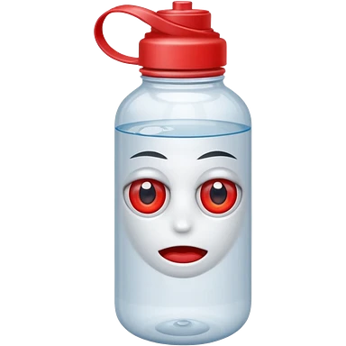 A water bottle with red eyes emoji
