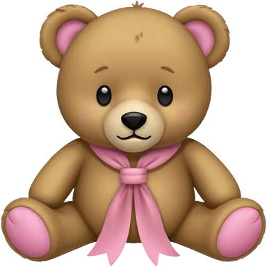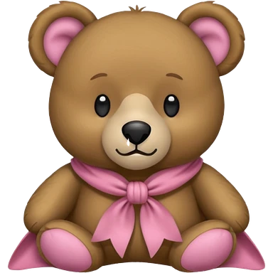 Ein süßer teddybär der mit einer hellrosanen decke zugedeckt ist und eine Schleife am Ohr hat emoji