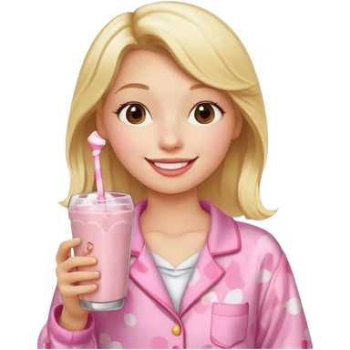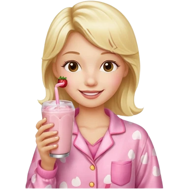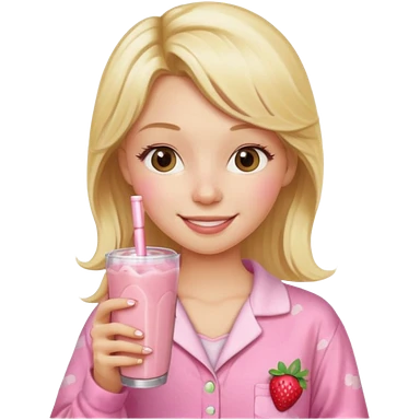 Ein Blondes mädchen was einen erdbeershake trinkt und blond ist und eine rosa ne Pyjama an hat emoji