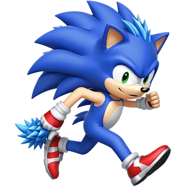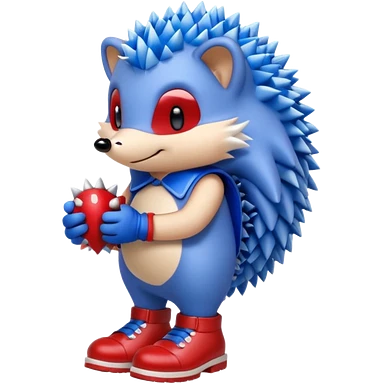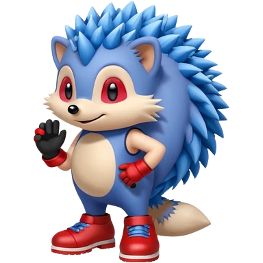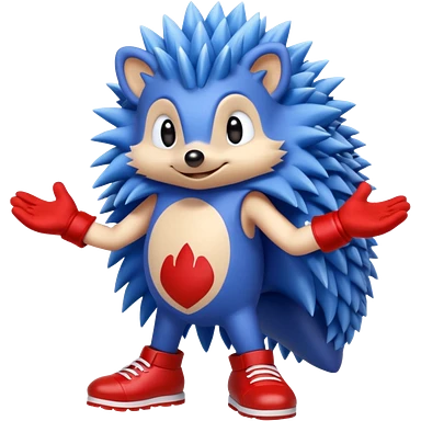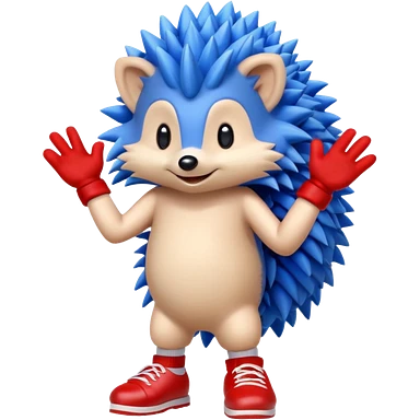 a blue hedgehog that has arms and legs with a tan chest fur, and some gloves and red and white shoes emoji