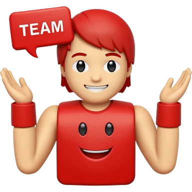 a blocky red avatar with a smiley face and the text “team coolkid join today” on his chest emoji
