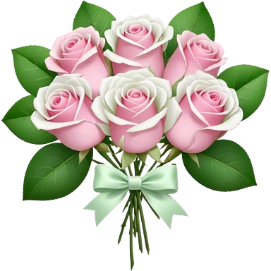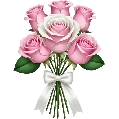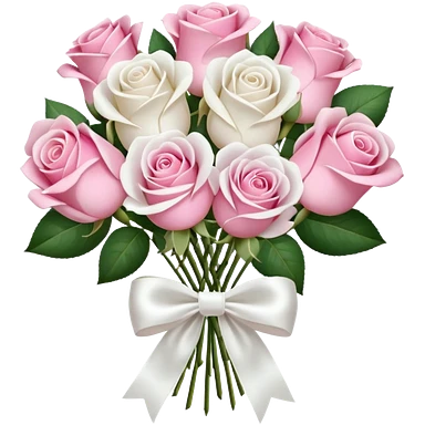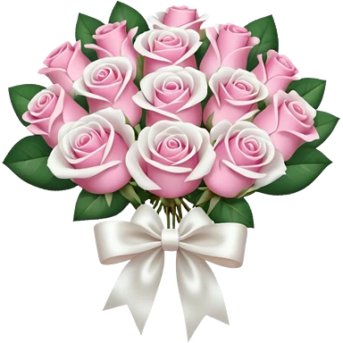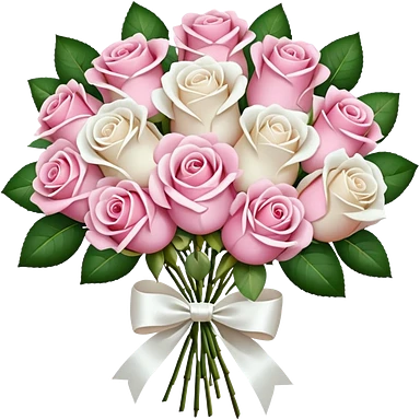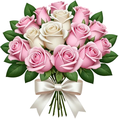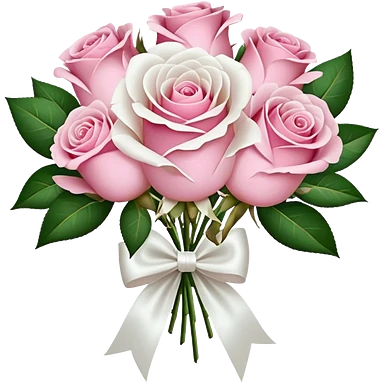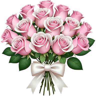 bouquet of pink and white roses and white satin bow emoji