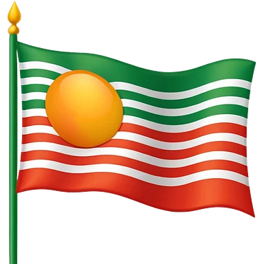 Flag with with red, white and green horizontal flag and an orange/yellow pointed sun in the middle emoji