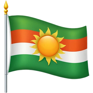 Flag with with 1 red, 1 white and 1 green (in that order) horizontal and an orange/yellow pointed sun in the middle (Kurdistan flag) emoji