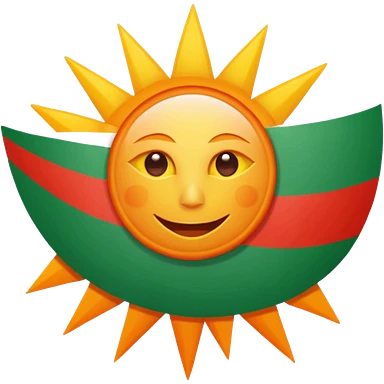 Flag with with 1 red, 1 white and 1 green horizontal flag and an orange/yellow pointed sun in the middle emoji