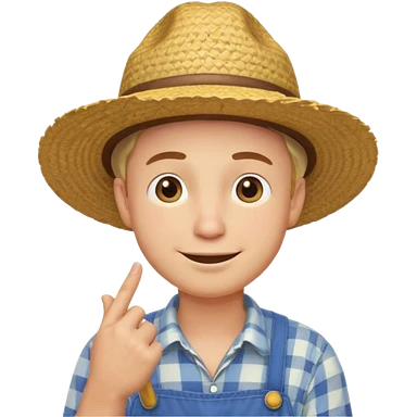 βA single emoji-style character combining π¨βπΎπ and π€: a smiling farmer man with a straw hat, friendly face, and light beard, holding one hand under his chin in a thinking gesture. His index finger rests under his face, eyes looking slightly upward as if thinking. emoji