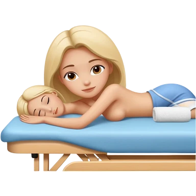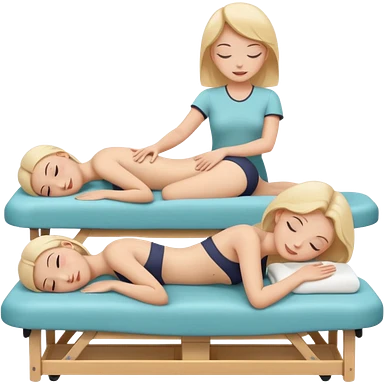 A cute emoji-style illustration of a girl lying on a massage table during a relaxing massage session, while another girl gently gives her a back massage. Soft colors, peaceful atmosphere, simple rounded emoji-like shapes, friendly and wholesome. emoji
