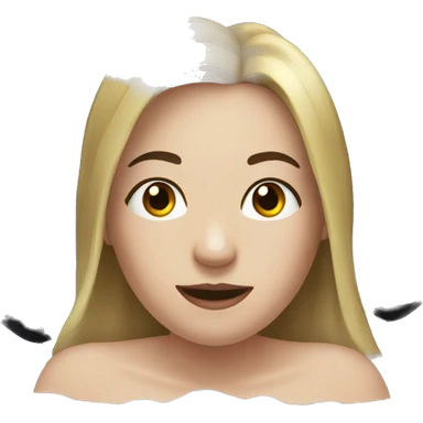 a white woman with dark hair in Bathtub black balloons around her emoji