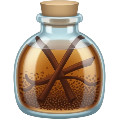 vanilla extract with dark grainy liquid inside the bottle emoji