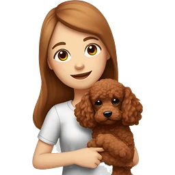 A girl with long brown hair hugging a cute red brown toy poodle puppy emoji