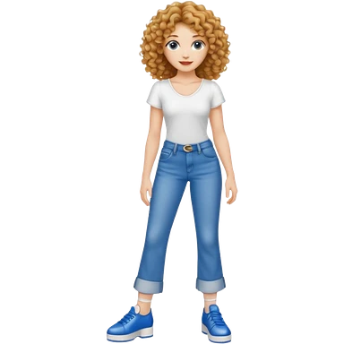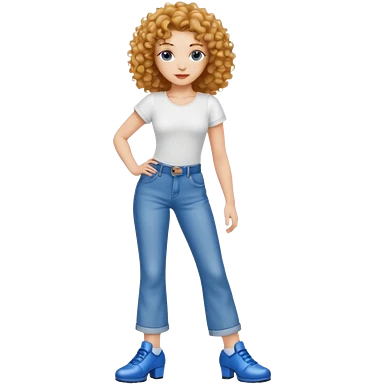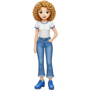Meuf Cleane tête fine très très très belle cheveux bouclé haut blancs et jean bleu large avec des samba emoji