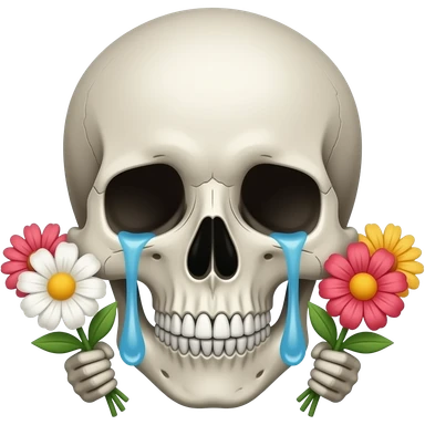 I want a skull emoji crying and holding flowers emoji