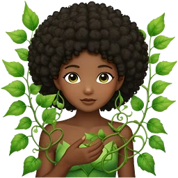 Dreamy nature fairy with brown eyes Afro black hair dark skin touching a vine emoji