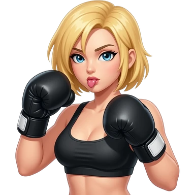 Breast boxing, blonde shoulder length haired female, android 18, from dragon ball super, in the black boxing gloves emoji