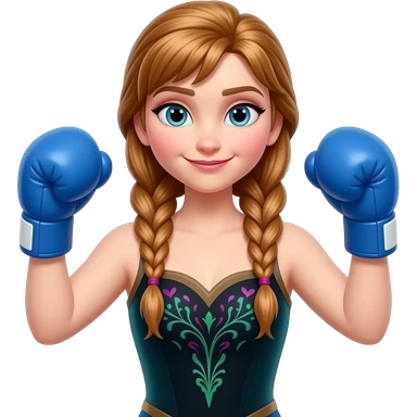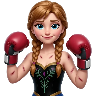 topless boxing, brown two braided haired female anna arendelle, from disney frozen, have bruised emoji