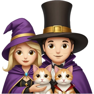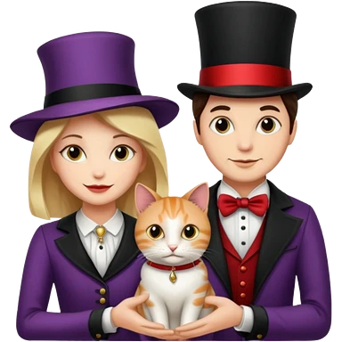 magician couple and their pet cat emoji