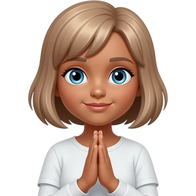Tan praying hands short hair girl with light brown hair and blue eyes emoji