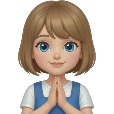 praying hands short hair girl with light brown hair and blue eyes emoji