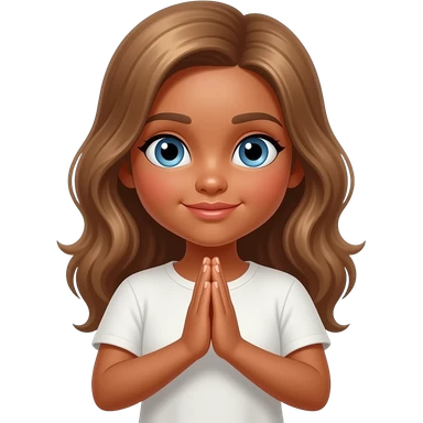 Tan praying hands girl with light brown hair and blue eyes emoji