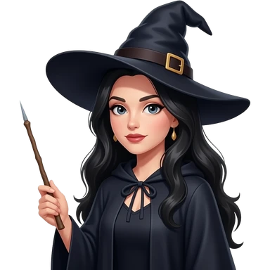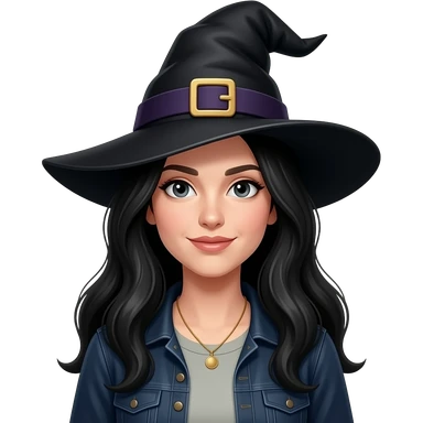Faça uma mulher de cabelos longos pretos como feiticeira com roupas comuns emoji