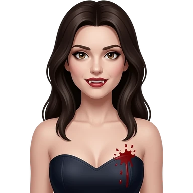 Faça uma mulher igual a katherine Pierce em forma vampira com um top reto marcando um pouco dos seios com sangue respingado perto deles emoji